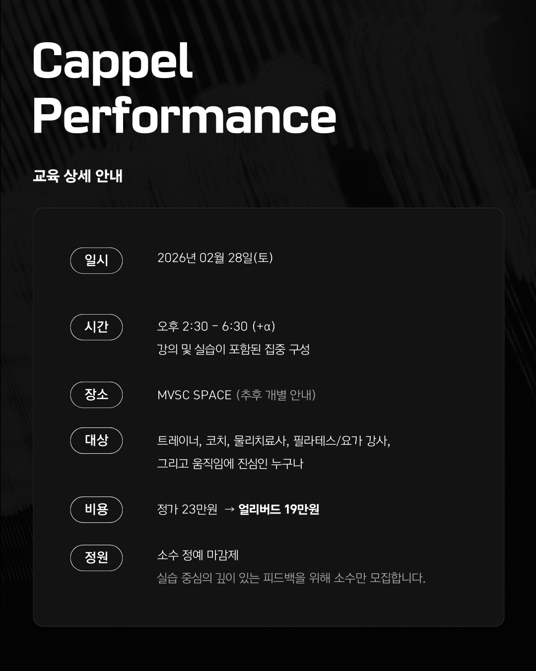 무브먼트사이언스원격평생교육원 | 대표자 : 김태준 | 연락처 : 010-4824-8413 l mvscspace@gmail.com